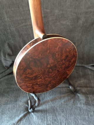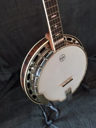 This is the best seller of the Bishline banjos. Beautiful burl walnut with the Bishline Tone Ring, simple appointments with a great sound and great price.