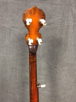 The Calico is a very striking banjo. Flamed maple and really nice inlay with a bound peg head. It also has the 06 tone ring and is the perfect banjo for the performer or the collector.