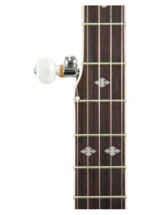 *We can add these as a free service when you purchase a banjo from us. When you add this banjo to your cart just select that you want the capos. What is this? When you use a standard capo on your banjo fretboard, fretting strings 1 through 4, you’ll need to capo the 5th string separately. The 5th string starts at the 5th fret. If your standard capo is on the 2nd fret, you also need to capo the 5th string two frets higher, at the 7th fret. We recommend installing railroad spike capos on frets 7 and 9 (A and B). We install them on the fretboard just under the 5th string, an idea that was developed and used by Earl Scruggs himself. We use them, and so do most of the professional players we know. When you’re playing, you don’t really notice the spikes because they’re out of the way, but they’re always there when you need them. Simply slide the 5th string under the spike. When you’re done, slide it out.
