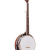 The OB-300 is, without reservation, the most beautiful flat head banjo you can buy at anywhere near its price. This gold-plated beauty has every feature you could ask for on a high-end professional banjo. A striking curly maple neck bound with matching curly maple and abalone-style binding catches the eyes; the sand-cast bell bronze flat head tone ring grabs the ears. This tone ring is used only in the world’s finest banjos. A unique abalone-and-pearl-style truss rod cover matches the exquisite inlay found on the neck and the resonator. Unlike most vine-style fret-board inlay patterns, the OB-300’s modified tree of life inlay features flowers as navigational markers at the appropriate fret positions to help you get around. Ingenious. If you want be heard AND noticed, this one’s for you.