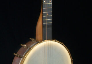 Similar to the Rambler Dobson but with a few upgrades. Available in walnut or cherry, this banjo comes with an aged copper or brass rim in 11″ or 12″. The softer metal gives this banjo a little warmer tone while maintaining sustain and projection. Another upgrade to this banjo is the Pisgah Hawktail tailpiece. This allows for more downward pressure on the bridge so that there is better clarity on each note.